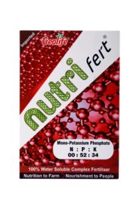 Fertimax K NPK 0-0-50 is a high-potassium fertilizer with a guaranteed minimum potassium content of 50%, designed to support robust plant growth, improve stress tolerance, and enhance flowering and fruiting. This potassium-rich formula is ideal for crops that require enhanced potassium levels to maximize yield and quality. Features: Moisture Content: Maximum of 1.5%, ensuring minimal impact on storage and handling. High Water-Soluble Potassium: At least 50% potassium (as K2O), ideal for promoting plant health and productivity. Low Chlorides: Total chlorides are capped at 2.5%, making it suitable for chloride-sensitive crops. Low Sodium Content: Maximum of 2% sodium to minimize salinity issues in the soil. Sulphate Sulfur: Minimum 17.5% sulfur content, important for protein synthesis and plant health. Benefits: Improved Plant Growth: Potassium aids in water regulation, enzyme activation, and overall plant health, leading to stronger root systems and better yield. Enhanced Flowering & Fruiting: Supports increased flowering, fruit development, and higher-quality yields in many crops. Stress Tolerance: Helps plants resist drought, frost, and disease by strengthening cell walls and improving water retention. Reduced Salinity Issues: Low sodium and chloride levels make it safe for use in saline-sensitive soils and crops. Boosts Nutrient Efficiency: The high solubility ensures that potassium is easily available to the plants, leading to better nutrient uptake and growth efficiency. Dose: Foliar – 200 gm per acre 1 gm per lit OR 15 gm per 15 lit water. Suitable For: Potassium Sulphate fertilizer NPK 00:00:50 is suitable for all crops, vegetables, fruits, cereals, and more.