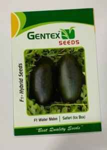 Name: Watermelon No. of seeds- 15 Fruit Color- Light Green with dark green stripes Maturity- 75-80 days after transplanting Fruit Shape- Short Oblong Fruit Weight- 7-9 kgs Flesh- Red Sugar Content- 10-11 Brix Germination: 70% minimum