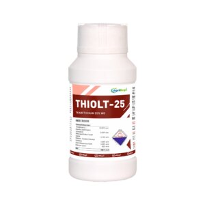 Katyayani Spino 45 is a Biological insecticide containing Spinosad(45%) in a Suspension concentrate formulation. It effectively controls a wide range of insect pests through contact and ingestion, which causes excitation of the insect nervous system. This insecticide is suitable for agricultural use against pests such as fruit and shoot borer, Boll worms, Thrips, etc., in crops like Cotton, Chili, Redgram, and many other fruit and vegetable crops. Technical Content: Spinosad 45% SC Mode of action: Spinosad 45% SC is a Biological insecticide derived from the naturally occurring bacteria Saccharopolyspora spinosa. It affects the pest through contact and ingestion, leading to involuntary muscle contractions, prostration with tremors, and finally, paralysis. Key Benefits: Spinosad 45% SC offers a powerful, environmentally friendly, and versatile option for pest management. Spinosad is a highly active, broad-range insecticide. Retains effectiveness for up to 10 days. Spinosad provides rapid knockdown of pests, often within hours of application. Because Spinosad is derived from natural sources, various certification bodies approve it for use in organic farming. Target Pests: American Bollworm, diamondback Moth, Fruit and Shoot borers, Thrips, and Pod borers. Target Crops: Pigeon Pea, Cotton, Chilli, Red gram, Brinjal, grapes, Cabbage and many other fruit and vegetable crops. Dosage: Domestic Use: use 1 ml per 1 Litre of water. Large Applications: 60-90 ml per Acre for a Foliar Spray.