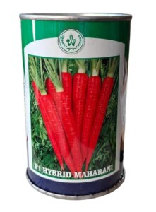 Variety Name: F1 Hybrid Maharani (Carrot) Fruit Shape & Colour: Very small with a self-coloured core of deep red colour. Fruit Weight: 200-250 Grams Maturity: 70-75 Days after sowing Root Length: 30-35 cms Seeds: 1.5 kg to 2 kg A cre